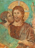 พวกเรารู้ดีว่า ยูดาส อิสคาริอ็อท เป็นผู้ถือถุงเงินในกลุ่มอัครสาวก และทรยศพระเยซู ด้วยการติดสินบนเพียงแค่ 30 เหรียญเงิน เพื่อชี้เบาะแสนำจับพระองค์โดยการจูบ ซึ่งถูกเรียกว่า “จูบของยูดาส” ทำให้พวกทหารของมหาสมณะไคยาฟาส เข้าจับกุมและนำตัวส่งต่อให้ทหารของปอนซีโอ ปีลาโต