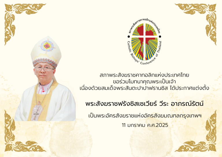 สมเด็จพระสันตะปาปาฟรานซิส ประกาศแต่งตั้งพระสังฆราชฟรังซิสเซเวียร์ วีระ อาภรณ์รัตน์ เป็นพระอัครสังฆราชองค์แห่งอัครสังฆมณฑลกรุงเทพฯ