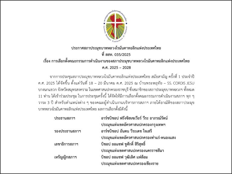 ประกาศสภาฯ เรื่อง การเลือกตั้งคณะกรรมการดำเนินงานของสภาประมุขบาทหลวงโรมันคาทอลิกแห่งประเทศไทย ค.ศ. 2025 – 2028