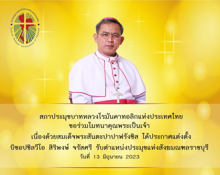 สมเด็จพระสันตะปาปาฟรังซิส ได้ประกาศแต่งตั้งบิชอปซิลวีโอ สิริพงษ์ จรัสศรี รับตำแหน่งประมุขแห่งสังฆมณฑลราชบุรี